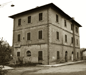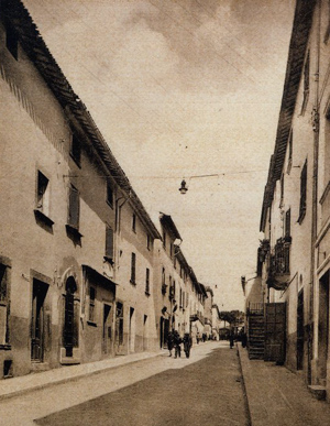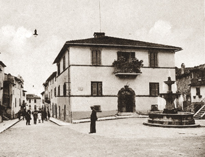 Graviuccio aveva fatto sosta in una piazzetta quadrata, vicino alla fontana di pietra scura che ostentava quattro delfini e uno zampillo micragnoso sulla sommità. Due dei quattro lati della piazza erano delimitati da case d’abitazione con relative scale esterne e poggioli; il terzo da un unico edificio, l’albergo; il quarto da un grosso cancello in legno, appoggiato ai lati su due piccole costruzioni, tipo garitta per sentinelle, che gli davano se non un aria militaresca, certamente un tono d’importanza. Due persone attendevano la carrozza: un barbiere mutilato di una gamba, sulla soglia della bottega e, accanto alla fontana, la guardia municipale. Graviuccio gli sussurrò quardandomi e la guardia fece un cenno al barbiere, come per dire:”ASPETTA CHE TE LO DICO”, poi mi si avvicinò, si presentò, si offrì di accompagnarmi all’albergo. Lo ringraziai perché c’ero già davanti; aggiunse che avrebbe aspettato per mostrarmi la scuola e mi lasciò libero di entrare. La Cesira di Vera non nascondeva la sua diffidenza. Girando e rigirando i documenti che le avevo dato, confrontava le somiglianze con la fotografia e poiché non poteva metterla in dubbio, dimostrava di passare da uno stato d’animo ostile a uno più possibilista, ma senza esagerare, sempre incerta se accettarmi o cacciarmi in malo modo. Il viso le si spianò solo quando dissi che ero venuto per insegnare alla scuola del paese; ma prima di assegnarmi la camera, ero il solo cliente, con residuo di dubbio (“FORSE FACCIO MALE MA COME POSSO MANDARLO VIA?”) si premurò di comunicarmi che l’albergo chiudeva alle 21 e che dopo la chiusura non avrebbe più aperto a nessuno, per nessun motivo. Con questa poco allettante dichiarazione, che la sera stessa, purtroppo sperimentai, comincio la mia vita nuova, la graduale scoperta della realtà Castiglionese, della gente degli angoli più nascosti, partendo dalla parte più moderna, quella intorno al Poggetto, piuttosto grigia e bruttina, fino ai vicoli scendenti del vecchio borgo, con ciottoli e gradini di pietra consumata, tra case centenarie, piazzette nascoste piene di gente e di vita. Questo era, per chi come me ha il male della pietra antica, la parte migliore di tutto l’abitato. Qua e la si vedono costruzioni e pezzi di costruzioni del XVII/XVIII secolo, magari un pò impecettati per successive manipolazioni o per miglioramenti che tali non sono. Le impressioni, i ricordi di quei giorni sono ancora talmente vivi e presenti che si affacciano, si sovrappongono, riportano con evidenza le immagini di uomini, donne e ragazzi rimasti come allora.