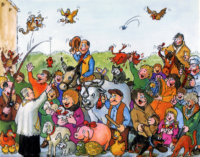 – Sant’Antonio caccia ‘l male co la su benedizione, per cui l’omo e l’animale vanno lì pe l’occasione. (17 gennaio)