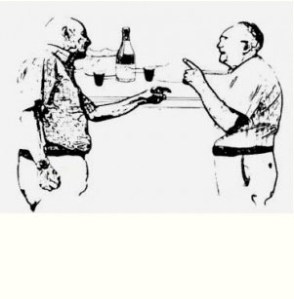 Grida costernato Alfredo accorgendosi che non ha versato vino nel bicchiere di Villesse ma del buon vermuth Vaselli appena arrivato dalle cantine del Palazzone.Villesse che già aveva pagato per un bicchiere di vino, tracanna di un sol sorso il vermuth e facendo finta di non aver capito, risponde: