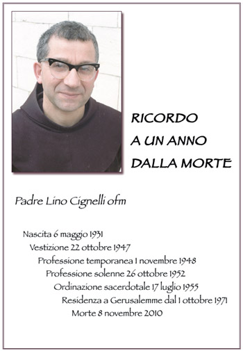 Con animo grato ricordiamo P. Lino attraverso le sue stesse parole. Sono confidenze spirituali che, giovane frate, esprimeva al Signore nelle tappe fondamentali della sua vita. Sono pensieri, propositi, preghiere che, insieme ad altri ricordi personali, aveva consegnato pochi mesi prima della scomparsa alla sorella Giacinta (Pomezia, Italia). Chi lo ha conosciuto vi trova già il francescano e il sacerdote innamorato di Cristo, della Mamma Celeste e dei fratelli. (G. Claudio Bottini)