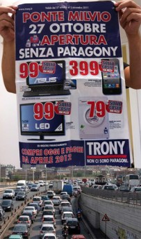 Il 27 ottobre 2011 in un post su Facebook, Marco Luzzi scrive:Incredibile! Oggi a Roma c’era un traffico inspiegabile, accendo l’autoradio e sento che la colpa è di un’inaugurazione di un nuovo Trony a Ponte Milvio, per chi non fosse pratico a poche centinaia di metri dallo stadio, quindi in pieno centro …. gente in fila dalle 4 di mattina, circa 10.000 persone arrivate per accaparrarsi quei pochi articoli sottocosto in occasione dell’apertura! Alle undici di mattina è stata chiusa la tangenziale a San Giovanni paralizzando una parte di Roma, poco più tardi anche Corso Francia si presentava come un parcheggio a quattro corsie e Roma nord è andata nel panico più totale. Tutto questo perché qualcuno doveva comprarsi un telefonino di ultima generazione a prezzo stracciato o un televisore a 99 €. Ci sono scappate pure le scazzottate per accaparrarsi l’ultimo articolo rimasto. Poi però siamo tutti bravi a fare i moralisti e a lamentarsi della crisi! Un popolo di viziati! Un popolo alla frutta!